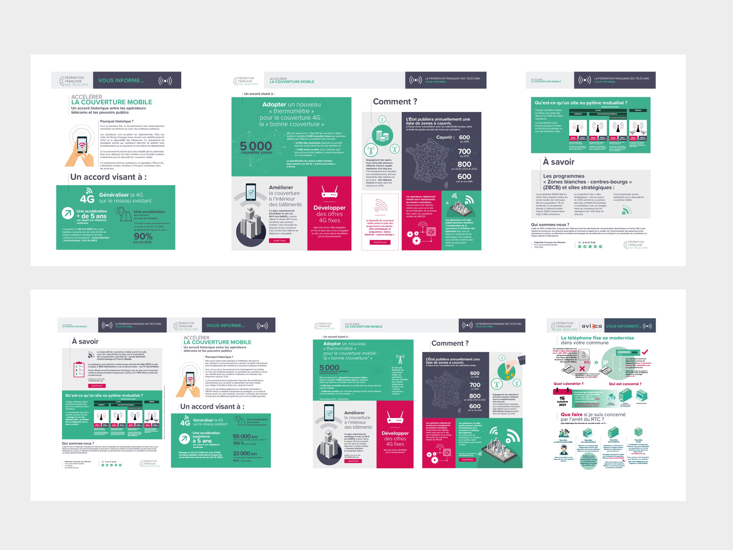 La Fédération Française des Télécoms informe régulièrement sur les évolutions technologiques et les transformations numériques du secteur. Pour toucher un public large et varié, elle produit une gamme de supports : imprimés, vidéos pédagogiques, flyers et campagnes digitales. Chaque contenu vise à offrir une explication claire et fiable des enjeux tout en les rendant accessibles au plus grand nombre grâce à un travail de vulgarisation. Soucieuse d’inclusion, la Fédération propose également des versions FALC (Facile À Lire et à Comprendre) afin de garantir une compréhension optimale pour tous.