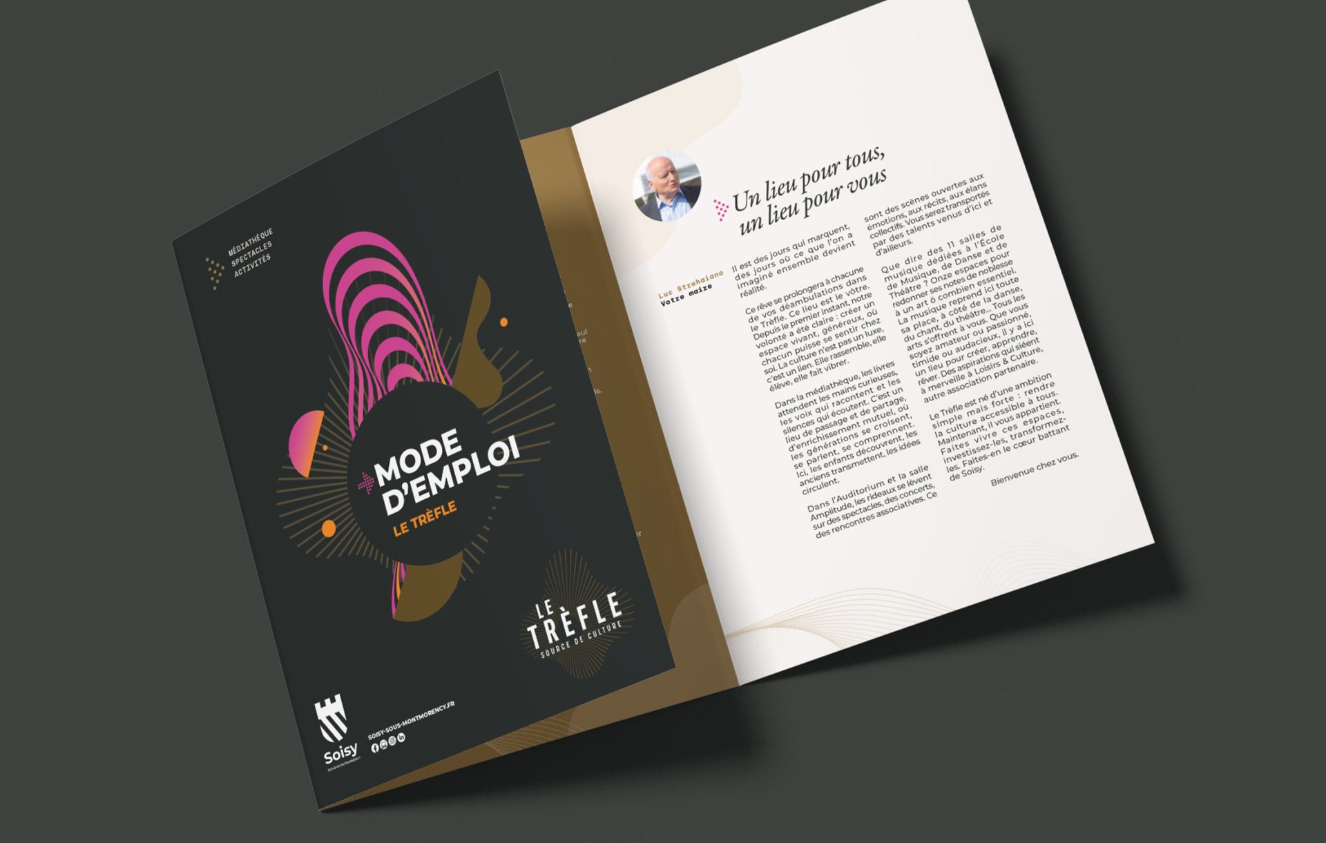 Le Trèfle, nouvel écrin culturel de Soisy-sous-Montmorency, a été imaginé comme un lieu ouvert où chacun peut y trouver spectacles d’envergure nationale, expositions, conservatoire et médiathèque. La mission : accompagner la ville dans la création d’une identité visuelle capable de traduire l’âme du lieu : un espace protéiforme, qui fait dialoguer les disciplines et s’enracine profondément dans la vie locale, tel un carrefour où se rencontrent les histoires et les sensibilités.